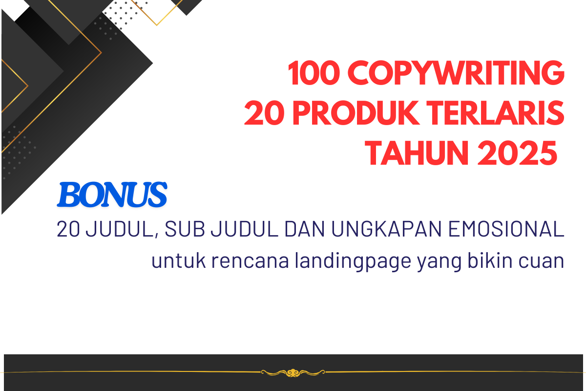 Dapatkan 100 Copywriting Siap Pakai dari 20 Produk Terlaris Tahun 2025 — Tinggal Copy, Paste, Edit Sedikit, LANGSUNG JUALAN!
