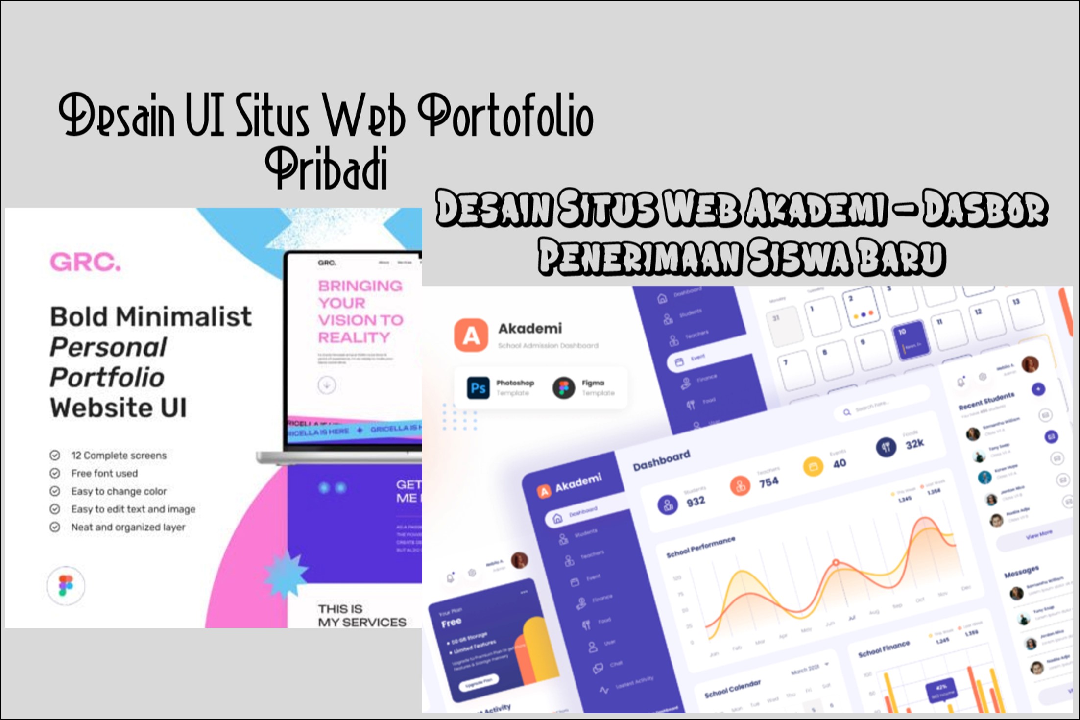 Paket templat ini terdiri dari 16 halaman dalam mode terang saja yang akan sesuai dengan kebutuhan sekolah Anda yang tersedia dalam format file PSD dan Figma. Anda dapat mengedit warna, teks, dan gambar pada halaman dengan menggunakan Adobe Photoshop dan Figma sesuai keinginan Anda. Buka dokumentasi ‘Bantuan’ yang disediakan dalam paket untuk membantu Anda mengedit halaman.