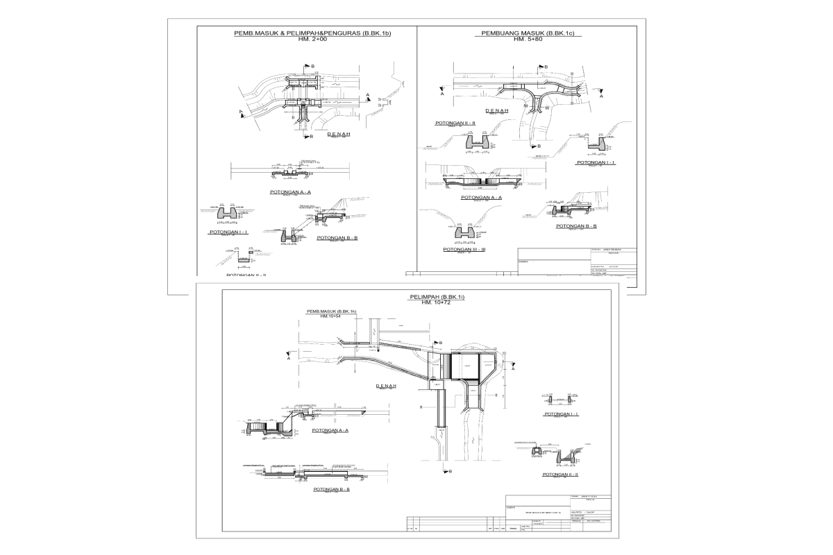 Contoh gambar desain bangunan pelimpah dan pembuang masuk (affour) ini dapat dijadikan sebagai bahan referensi dalam melaksanakan proyek perencanaan irigasi teknis, khususnya dalam membuat gambar-gambar desain untuk bangunan airnya (bangunan pelengkap).