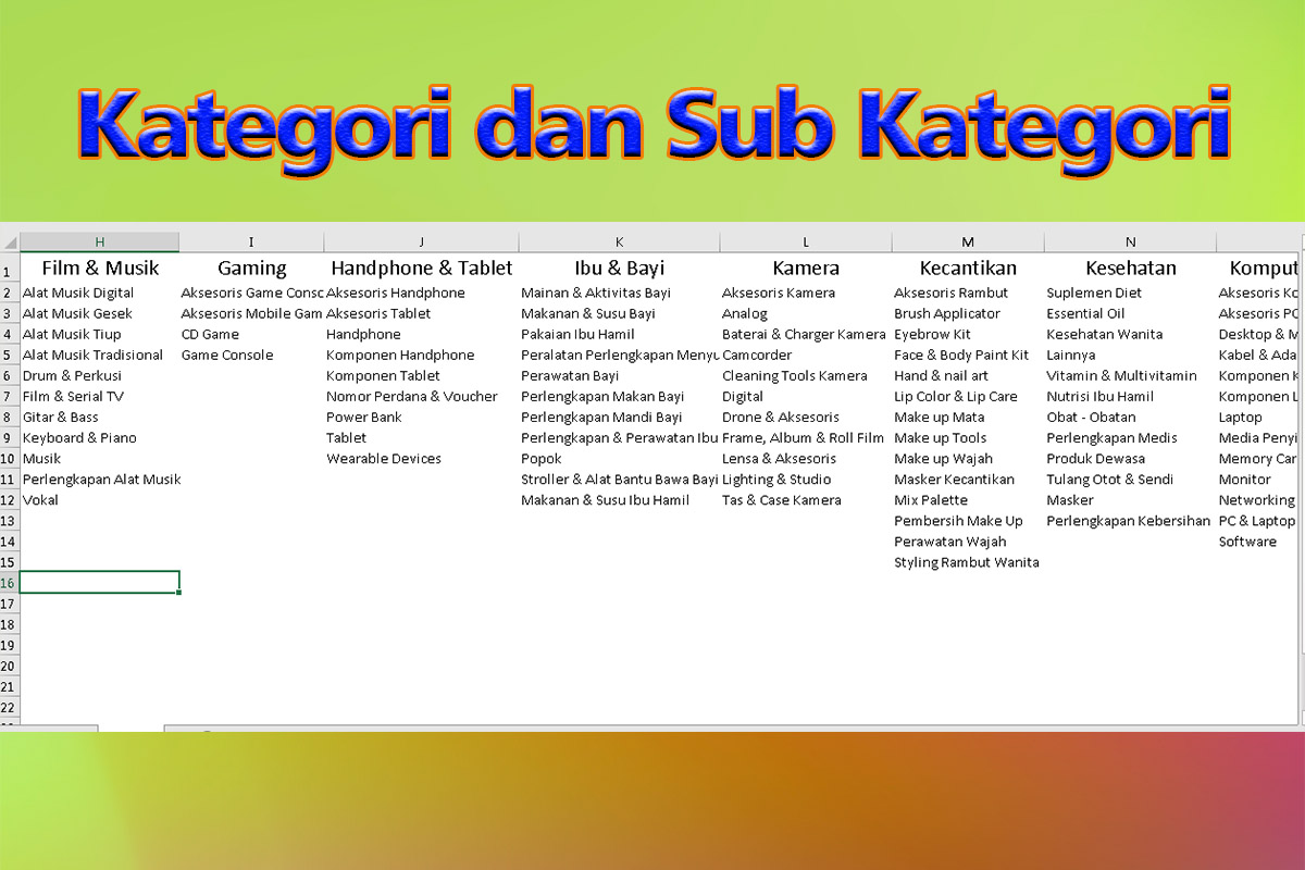 Terdapat 30 kategori dan 400 sub kategori
