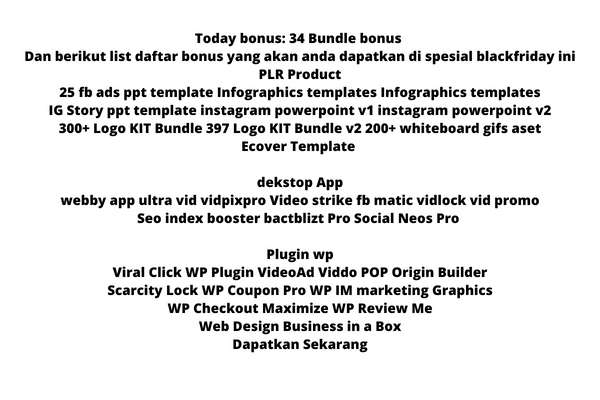 Dan berikut list daftar bonus yang akan anda dapatkan di spesial blackfriday ini