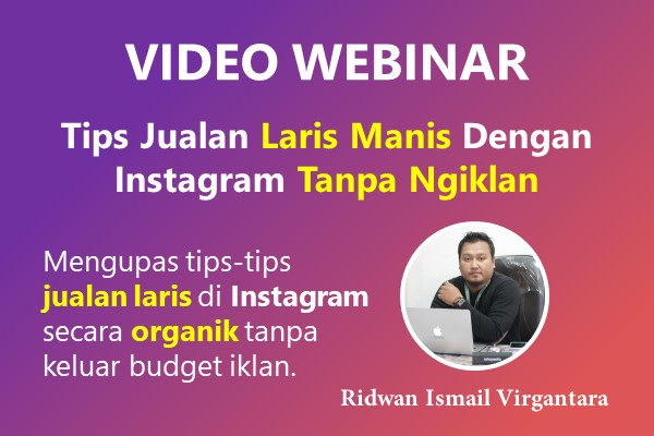 Video webinar ini berdurasi lebih dari 80 menit dengan menghadirkan pembicara yang sudah berpengalaman berjualan di Instagram, yaitu Ridwan Ismail Virgantara.